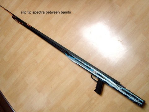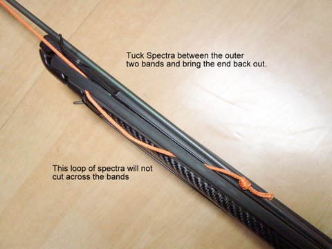 General UHMWPE Lines- What are they and are they all the same even if they look the same? Here is some basic information about the different types of lines you'll find out there. The answer is a simple no! UHMWPE is Ultra High Molecular Weight Polyethylene. Often incorrectly called HMPE or High Modulus Polyethylene. The nomenclature is important as that is what differentiates the fibers. The stronger the individual fiber the higher the molecular weight (or length of molecules) in the fiber. Calling a fiber UHMWPE is like lumping all steel cables into the same category, and as I am sure those of you that work in salt water understand, all steel cables are not equal. There are many types of UHMWPE, the best known are from either Honeywell "Spectra" or from DSM "Dyneema". Its important to understand that not all Spectra fibers are the same, nor are all Dyneema fibers the same. Fiber diameter is referred to in terms of Denier and the same Denier fiber can very in strength by up to 40%. So in fact you can get up to a 40% difference in strength in lines of the same diameter, with the same basic construction, but made with different classes of fiber. Within those classes are in some cases up to 3 grades for each denier. Spectra (USA) has 4 classes of fibers with various grades for each fiber. Dyneema (Europe) has 7 classes of fibers. So it is anything but straight forward with it comes to Spectra and Dyneema fibers. The main difference between Spectra Fibers and Dyneema fibers is the number of filaments that make up a single denier (or thickness) of fiber. Dyneema has more fibers per denier giving it a softer hand as each filament can slide past the next when bending. Spectra has fewer fibers per denier making it harder to break the individual fibers and therefor making it less likely to "Fuzz Up". If a line is not made of either Spectra or Dyneema then it is referred to as generic UHMWPE or incorrectly HMPE. This fiber typically comes from China and there is only one low grade. The single grade of fiber from China has much more variability in the diameter of the individual filaments that make up the fiber, making the fiber have a much greater variability of strength for a particular denier. These fibers are typically used as fillers in the core of products or in situations where variability in the breaking strength and abrasion resistance of the line are unimportant. In terms of fiber cost Spectra is the most expensive, followed by Dyneema and then much cheaper (by up to 3 to 4 times) is Chinese UHMWPE. So it's important not to assume that just because a line looks similar that it will perform the same. The next thing to consider is construction, and this is where even using the same fiber two lines can perform completely differently. It typically takes months of testing, both in the lab and under real world conditions to make a line that meets a customers criteria. Remembering of course that if you ask 10 people what the ideal line is, you will probably get close to 10 different answers. More complex constructions and tighter braids require more sophisticated braiders and greater knowledge of how fibers work together to produce. More complex constructions are also slower to produce making them more expensive, even when made from the same fibers. Typically the tighter the braid the more abraision resistant it is and the more fiber you use due to loss of length due to braiding. The more linear the fibers the more strength you retain. Engineering a line for a specific application (other than very light lines under say 200 lbs) usually requires a combination of both linear or near linear fibers for strength and a tight over-braid for abrasion resistance and resistance to tangling or water-knotting. The third component of well engineered lines is the coating or impregnation of the line to minimize salt water penetration and maximize abrasion resistance. Polyurethane is the typical coating used although again all polyurethanes are not formulated to perform the same. Q-PowerLine utilizes a proprietary formulation specifically for salt water spearfishing line use that is only found on Q-Powerline products. You get what you pay for! How do I rig my sliptip? This setup prevents the slide ring from going to the end of the cable and holding the slip tip on the adapter. It also prevents the slid ring from moving down the shaft and ending on the track portion of the gun. 1: Use Teflon tape to cover threads. 2: Put a few wraps of electrical tape about 2in from threads. ![]() 3: Put slide ring on shaft. 4: Screw down Sliptip adapter. How do I load my sliptip? ![]() 1: To load the slip tip on your gun, load the bands first. 2: Then seat the slip tip on the male adapter. 3: Then take the end of the cable or Spectra and pull it between the outer two bands until it is snug and holding the slip tip on the adapter. 4: Then pull the end of the cable or spectra back through the bands so that there is only a short section of the cable or spectra between the bands. This prevents the cable from abrading the bands when the shaft is fired. ![]() ![]() ![]() ![]() What should my gun look like after it's setup? These are pictures to help rigging your gun and installing a reel. ![]() ![]() ![]() ![]() ![]() ![]() ![]() ![]() ![]() What are all these different parts? These are a few pictures of the different parts of the speargun and the common terminology use to describe them. ![]() Line release holds the line when the shaft is loaded. It is released forward and the line goes free when the shaft is fired. Shark fin tab is the tabs on the shaft that the bands are loaded on. ![]() Line tab is on the muzzle to hold shaft line on the muzzle as the line holds the shaft. ![]() Muzzle is injected molded high impact polymer. ![]() Carbon fiber barrel is made of .100 in wall thickness for optimum rigidity. Bands What Should I know about bands? Bands Are Not Created Equal There is always ongoing tweaking of gear by divers to try and 